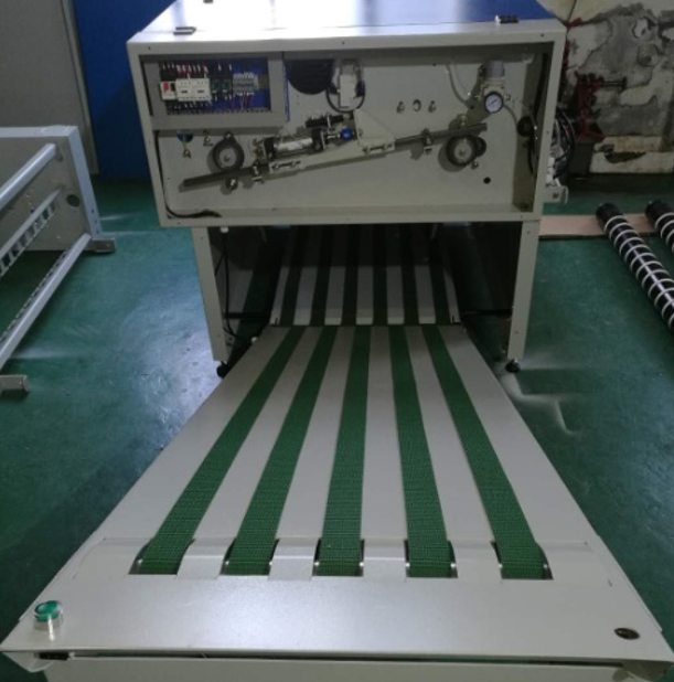 Feature: Full automatic operation, saving labor cost Can be installed next to any machine High performance, smooth conveyor system Prolong life conveyor belt Top brand electronic component ensure stable running. Size: 1140x1300x1040mm Power:0.8kw